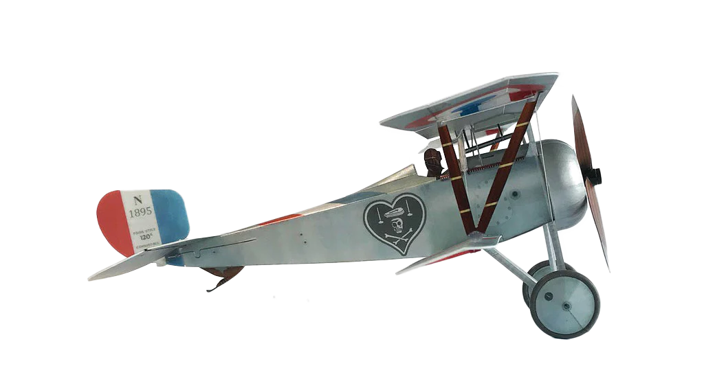 Das Microaces Nieuport 17 C.1 Kit repliziert eines der berühmtesten in Frankreich gebauten Sesquiplane-Jäger des Ersten Weltkriegs. Die Bemalung dieses Bausatzes ist die des berühmten französischen Ace Cpt. Charles Nungesser, bekannt als der „Ritter des Todes“.